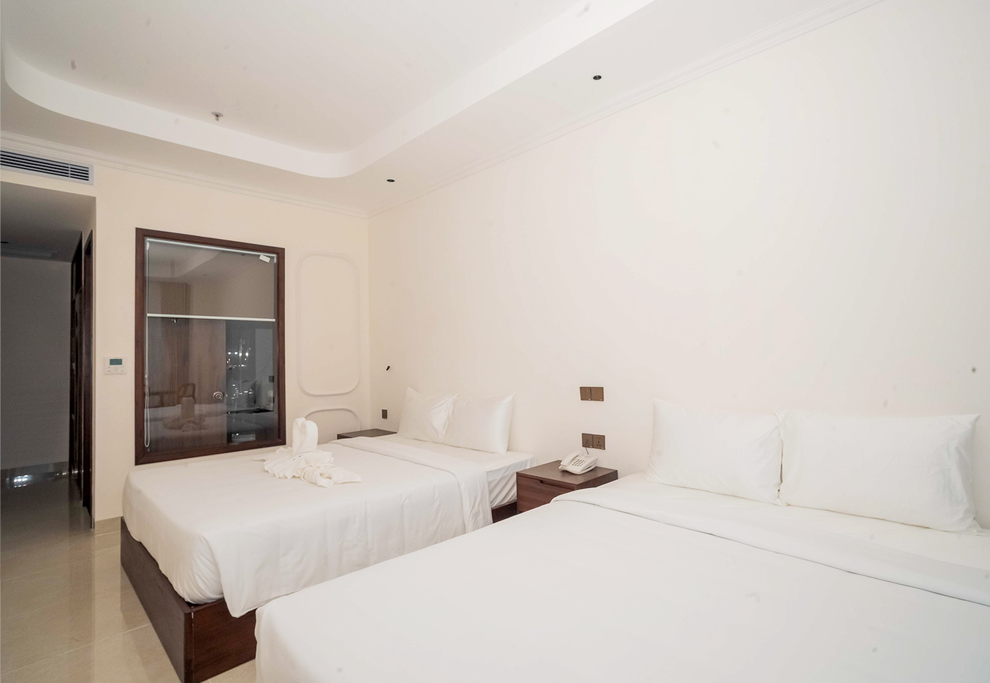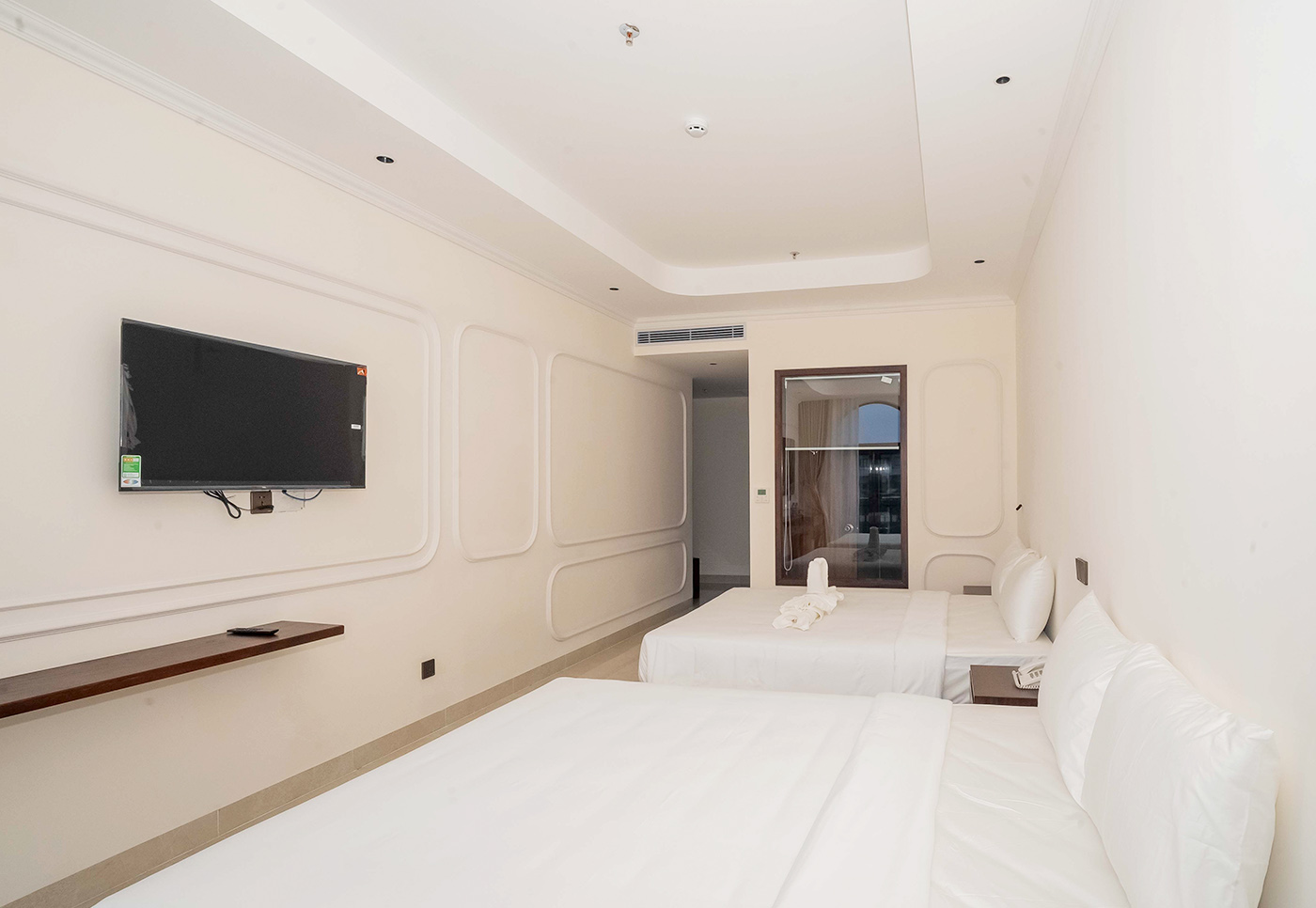 • 🛏️ Tiện nghi nghỉ dưỡng đẳng cấp: Giường ngủ cao cấp, TV màn hình lớn, minibar, két an toàn, phòng tắm sang trọng với đầy đủ tiện ích… mang lại sự thoải mái tuyệt đối sau một ngày dài bận rộn.