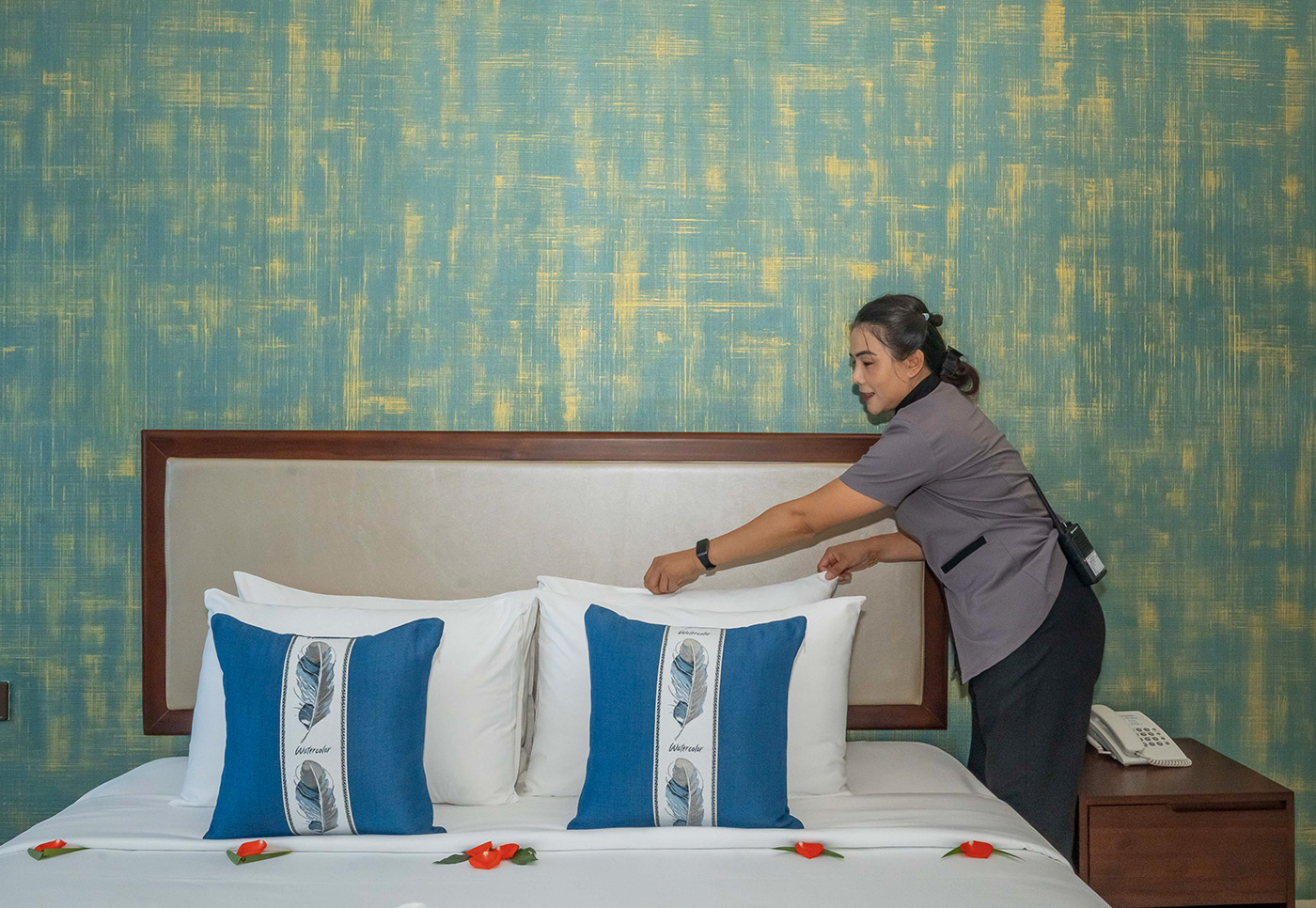 Đội ngũ nhân viên tại Grand Phan Thiết luôn sẵn sàng hỗ trợ du khách với thái độ tận tình và chuyên nghiệp. Dịch vụ dọn phòng hàng ngày, hỗ trợ hành lý và tư vấn các địa điểm tham quan, ăn uống địa phương giúp du khách có một trải nghiệm đáng nhớ.
