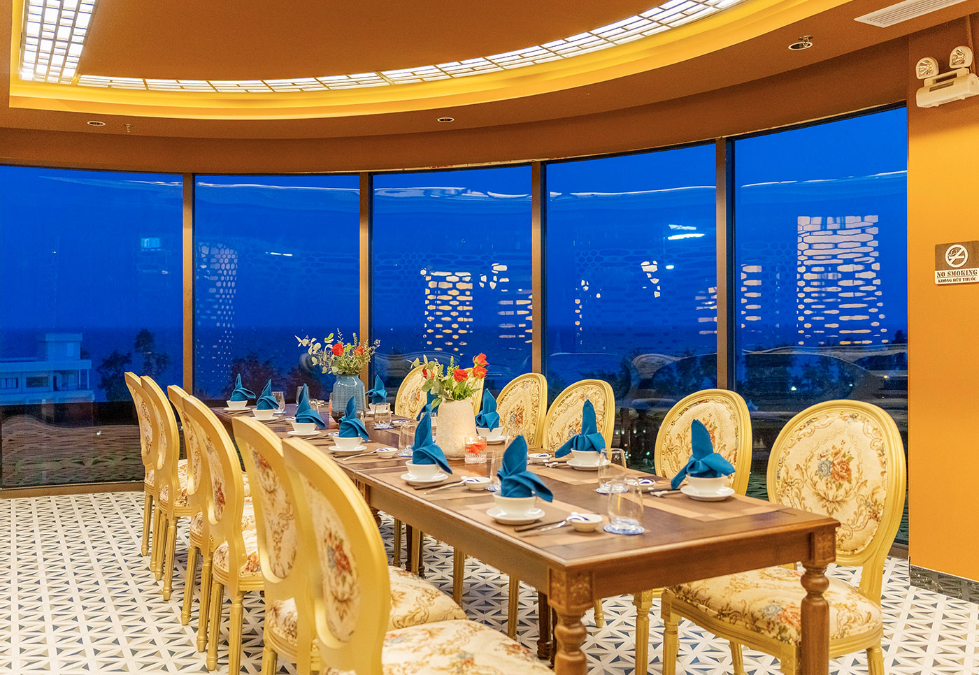 Với thực đơn đa dạng từ các món hải sản tươi ngon đặc trưng vùng biển Phan Thiết, đến những món Âu chuẩn vị được chế biến công phu, nhà hàng là điểm hẹn lý tưởng cho thực khách thưởng thức ẩm thực đỉnh cao.
