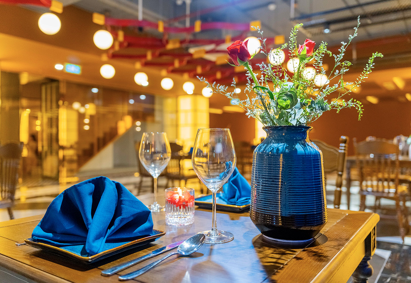 Tọa lạc ngay trong không gian sang trọng của Grand Phan Thiết, nhà hàng Á – Âu mang đến hành trình ẩm thực tinh tế, kết hợp hài hòa giữa hương vị truyền thống phương Đông và sự tinh tế hiện đại của phương Tây.