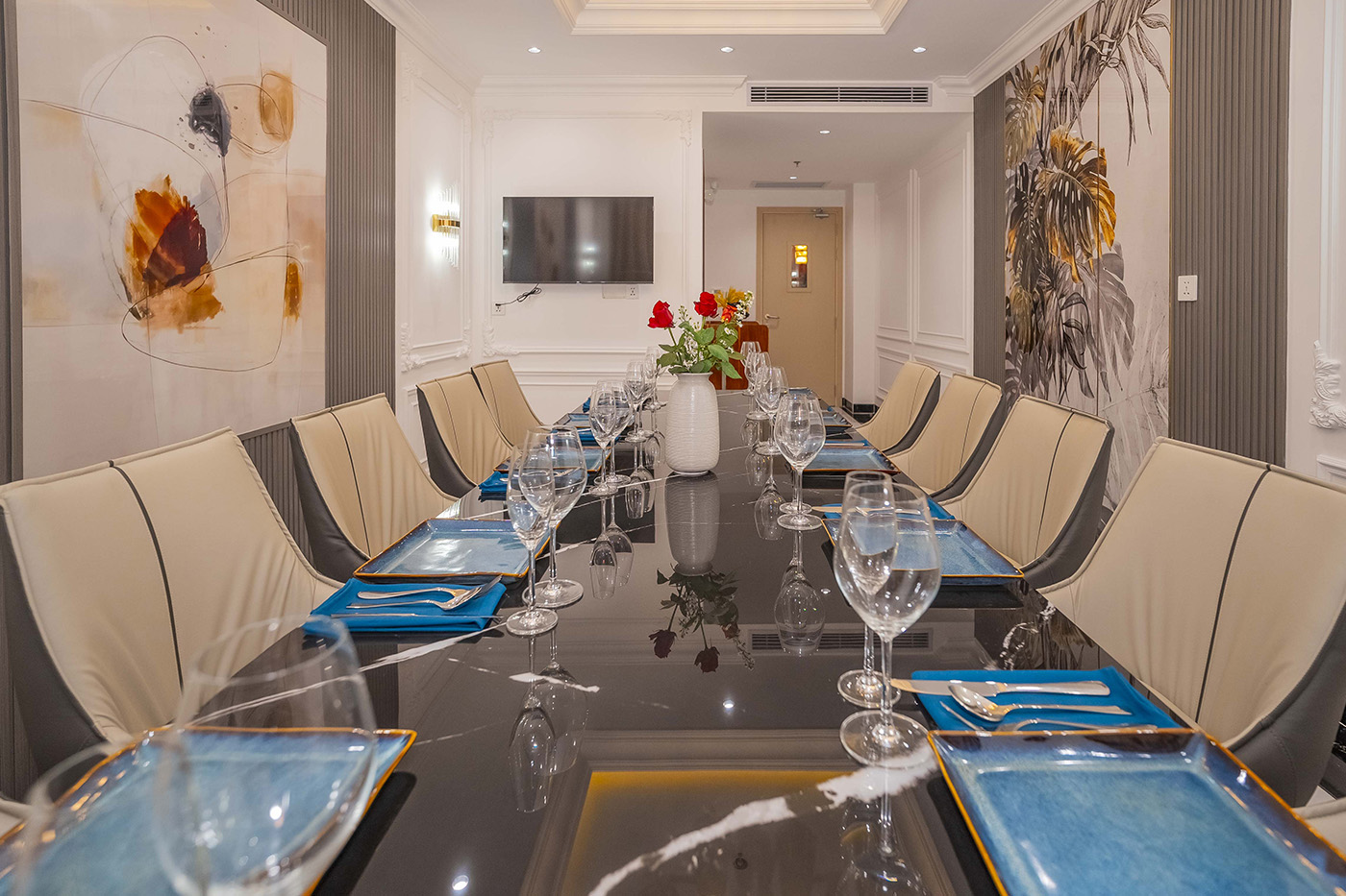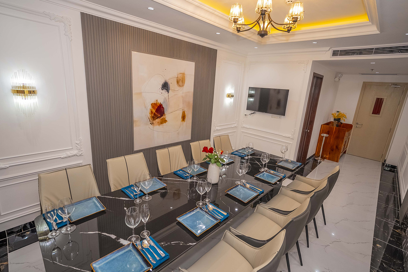 Phòng Vip – Sài Gòn tại Grand Phan Thiết mang đến một không gian ẩm thực đẳng cấp, lý tưởng cho những buổi gặp gỡ riêng tư, tiệc tiếp khách quan trọng hay những khoảnh khắc đáng nhớ bên gia đình, bạn bè.