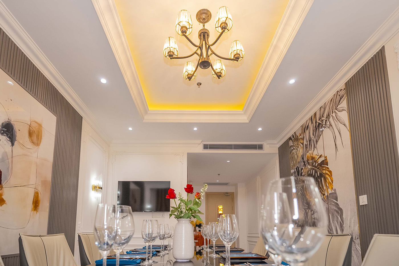 Lấy cảm hứng từ cao nguyên xanh mát, Phòng Vip – Lâm Đồng tại Grand Phan Thiết mang đến một không gian ẩm thực sang trọng nhưng vẫn giữ trọn hơi thở thiên nhiên trong lành và sự tinh tế, thanh lịch. Đây là lựa chọn hoàn hảo cho những buổi gặp gỡ riêng tư, tiếp khách quan trọng hay những bữa tiệc sum họp ấm cúng.