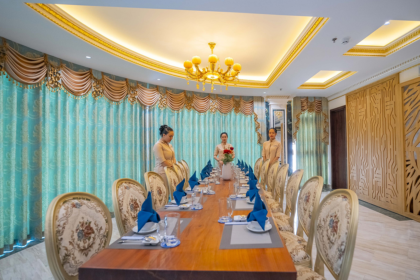 Phòng Vip – Sài Gòn tại Grand Phan Thiết không chỉ là nơi để thưởng thức ẩm thực, mà còn là biểu tượng của sự giao thoa giữa nét hiện đại và tinh hoa ẩm thực – nơi mỗi bữa tiệc trở thành một hành trình trải nghiệm sang trọng và trọn vẹn.
