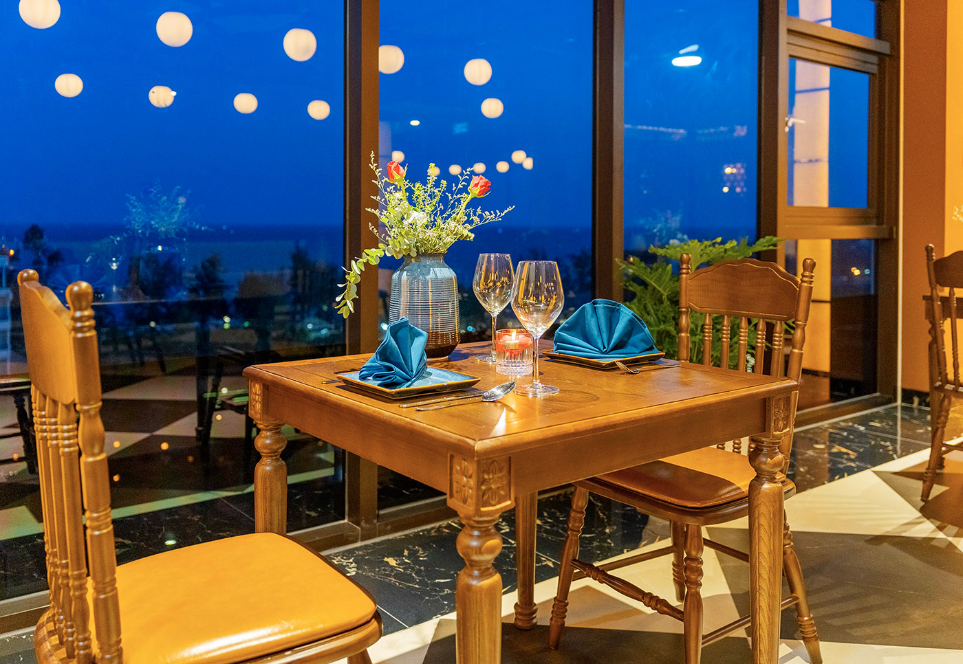 Tọa lạc ngay trong không gian sang trọng của Grand Phan Thiết, nhà hàng Á – Âu mang đến hành trình ẩm thực tinh tế, kết hợp hài hòa giữa hương vị truyền thống phương Đông và sự tinh tế hiện đại của phương Tây.